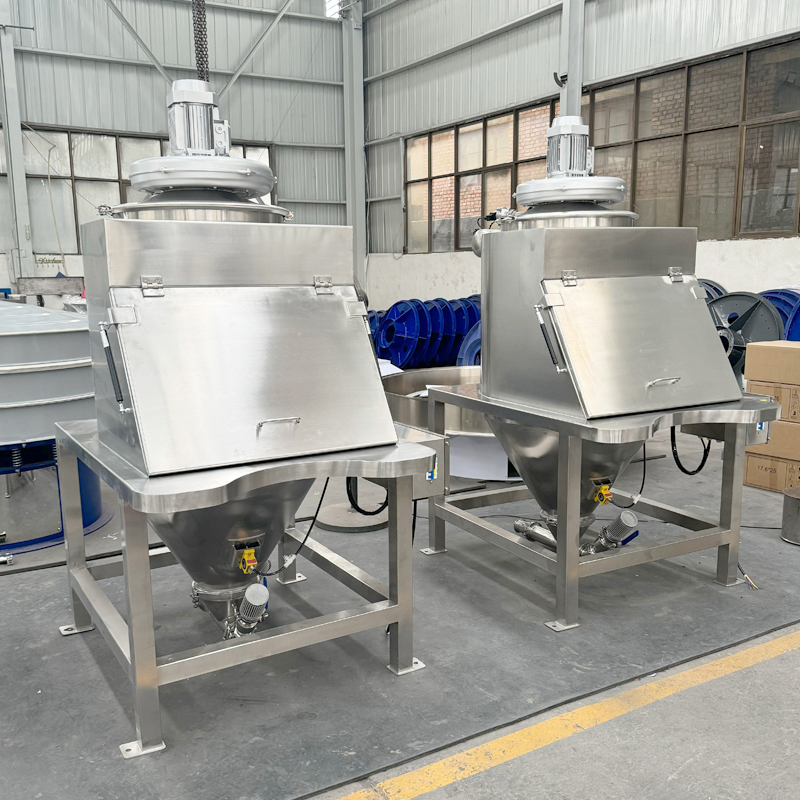 The dust-free feeding station is an environmental protection equipment for feeding powder and granular materials. It solves the problem of dust flying in traditional feeding through a sealed cavity and a negative pressure dust collection system. After the materials enter the closed space, the generated dust is captured in time and the clean air is discharged up to standard after being filtered by the filter core. It is suitable for bagged and bucketed materials and is widely used in the chemical, pharmaceutical and other industries to ensure health and dust-free production.