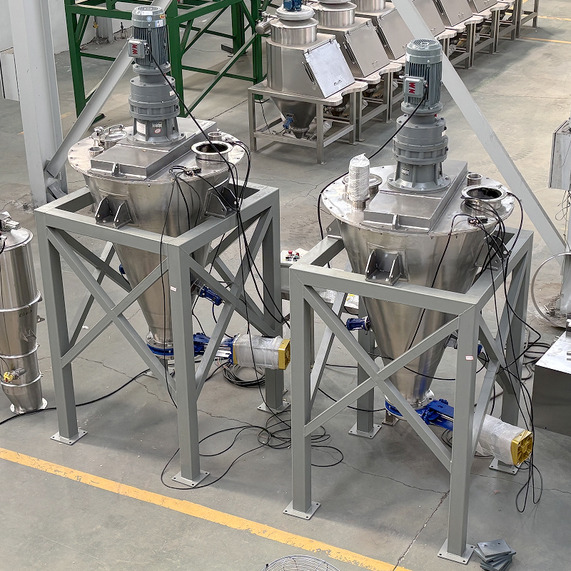 구성 A: 수동으로 먹이 스테이션 → 진공 피더 흡입 먹이 → 혼합 → 이동 시로