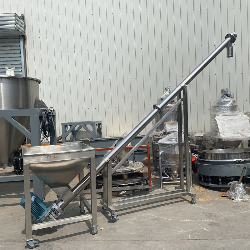 1. 스크류 컨베이어는 리본 믹서에서 혼합된 재료를 수평 스크류 컨베이어로 운반합니다.