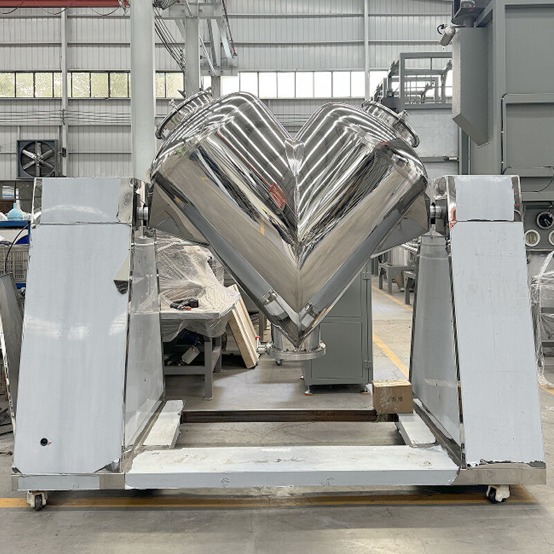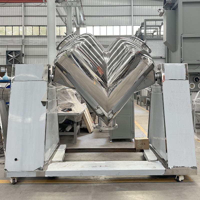 V형 믹서는 효율적이고 다용도인 분말 혼합 장비입니다. 주요 본체는 V자 모양으로 연결된 두 개의 비대칭 원통형 섹션으로 구성됩니다. 작동 중 실린더는 축을 중심으로 회전하여 내부 재료가 반복적으로 응집 및 분리되어 빠르고 균일한 혼합을 달성합니다. 이 장비는 구조가 간단하고 작동이 용이하며 내부 벽이 매끄러워 잔류물이 없어 청소 및 유지 관리가 용이합니다. 혼합 과정에서 위생 요구 사항이 있는 산업에 특히 적합합니다. 제약, 식품 및 화학 산업에서 널리 사용되며 다양한 건조 분말 및 과립 재료의 부드럽고 효율적인 혼합에 적합합니다.