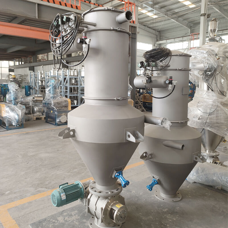 연속 진공 이송기의 작동 원리는 진공 펌프를 사용하여 밀폐된 분리기에 음압을 생성하여 재료와 공기의 혼합물을 흡입하고 여과 시스템을 통해 기체-고체 분리를 달성하는 것입니다. 사전 설정된 조건이 충족되면 시스템은 자동으로 진공을 차단하고 역풍 압축 공기를 도입하여 진공을 해제하고 필터 엘리먼트를 청소합니다. 동시에 하부 배출 밸브를 열어 중력에 의해 재료가 배출되도록 합니다.